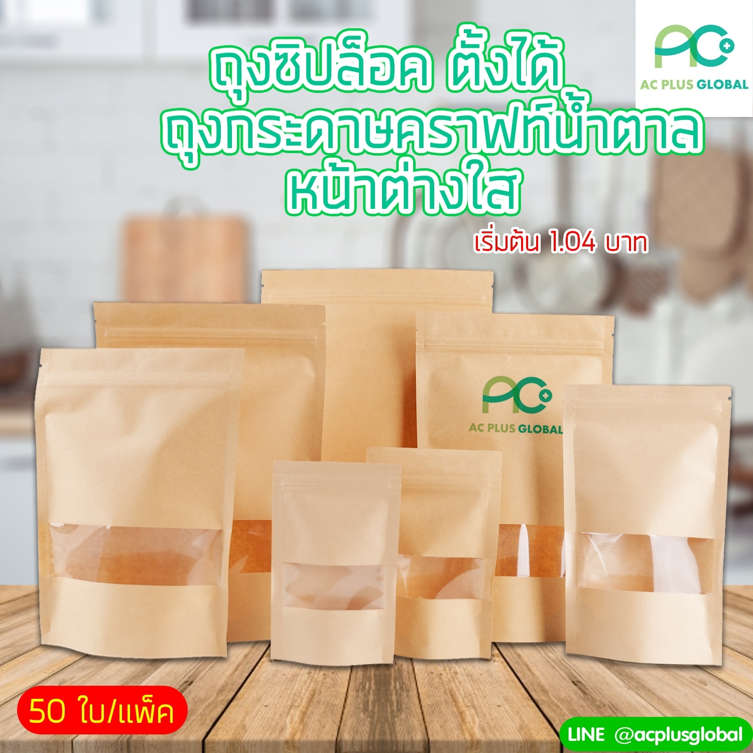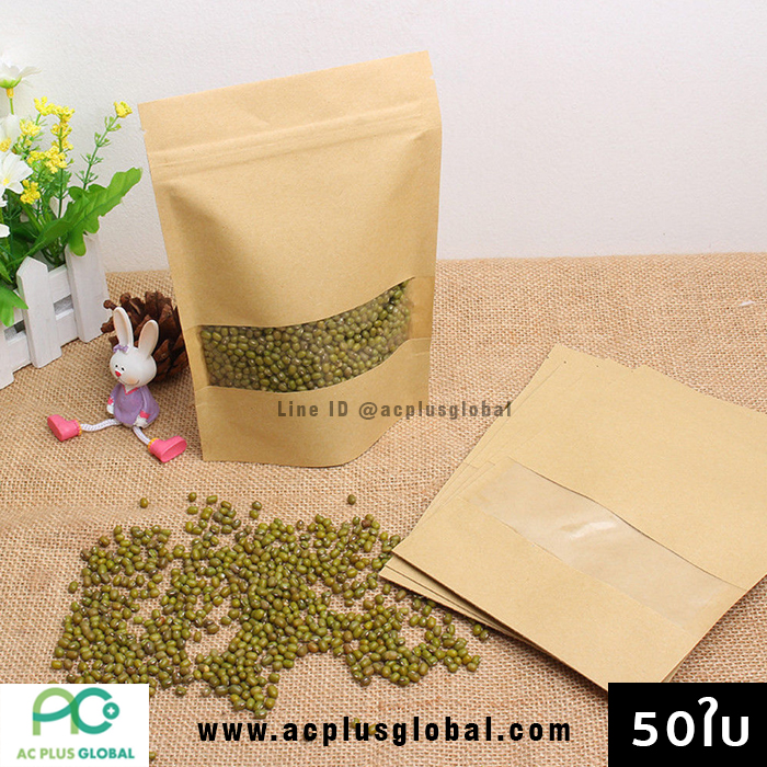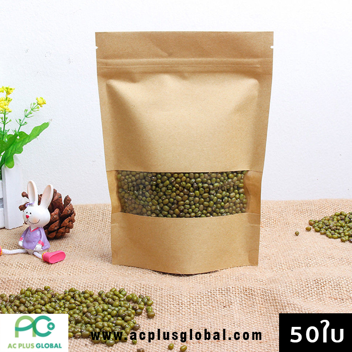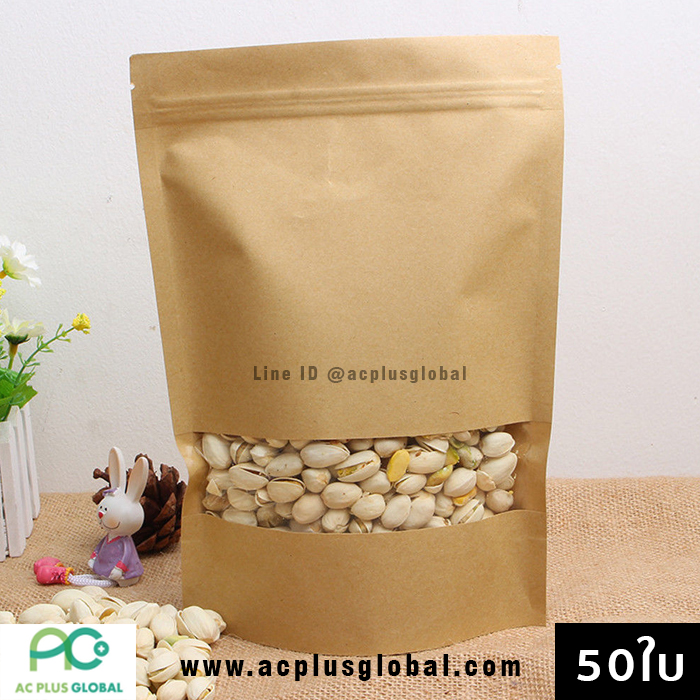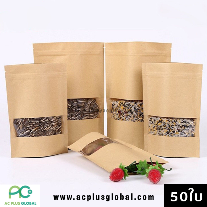 ?? ถุงซิปล็อค ถุงคราฟท์ สีน้ำตาล หน้าต่างใส ตั้งได้ ขนาด (50 ใบ / แพค)??