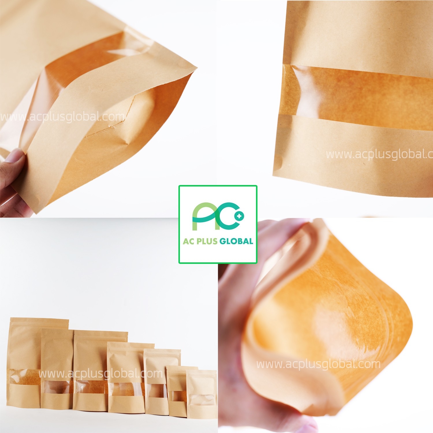 ? ลักษณะสินค้า : ถุงคราฟท์มีหน้าต่าง ด้านหน้าถุงเจาะช่องหน้าต่างมองเห็นสินค้าบางส่วน และด้านหลังเป็นกระดาษคราฟท์ ซึ่งถุงรุ่นนี้มีทั้งแบบ ถุงคราฟท์ตั้งได้ มีก้น และ ถุงคราฟท์ตั้งไม่ได้ ไม่มีก้น (ด้านในเป็น PE food grade) สามารถใช้เครื่องซีลถุง ซีลเหนือซิปล็อคได้ และ สามารถใช้ตรายางปั๊มบนถุงได้