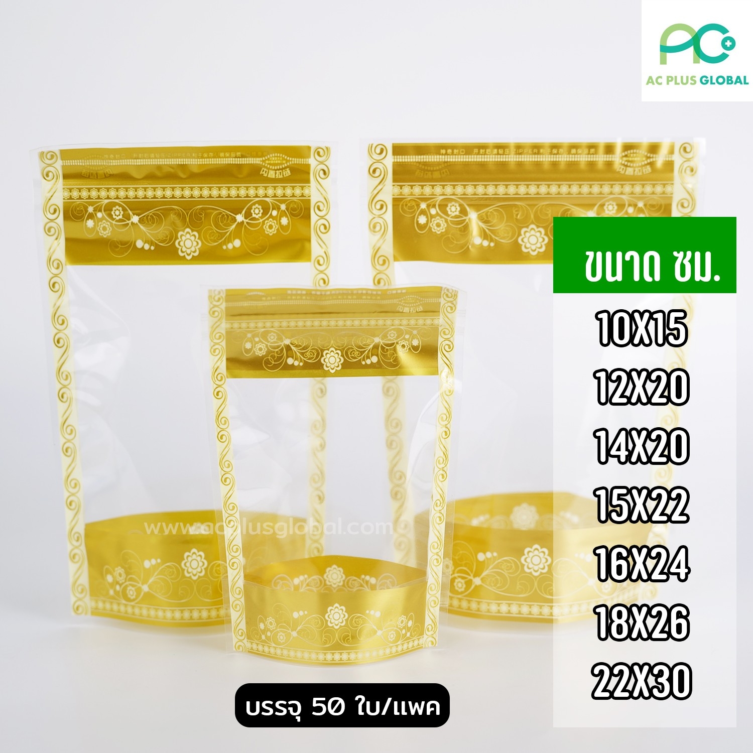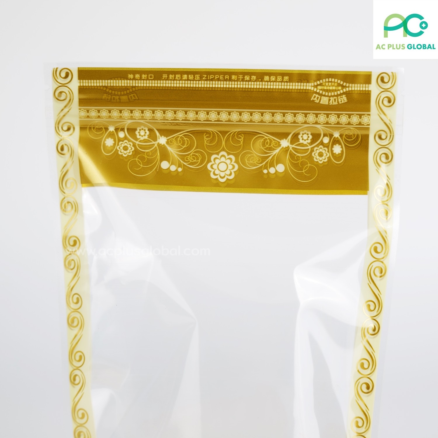 ▪ ถุงซิปล็อค ลายลูกไม้ สีทองตั้งได้ มองเห็นสินค้าด้านใน ป้องกันอากาศและความชื้นได้ดีเยี่ยม