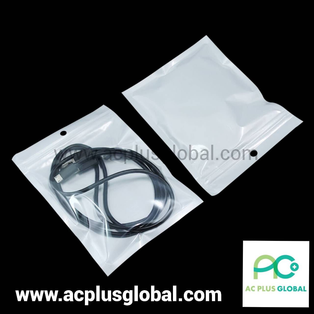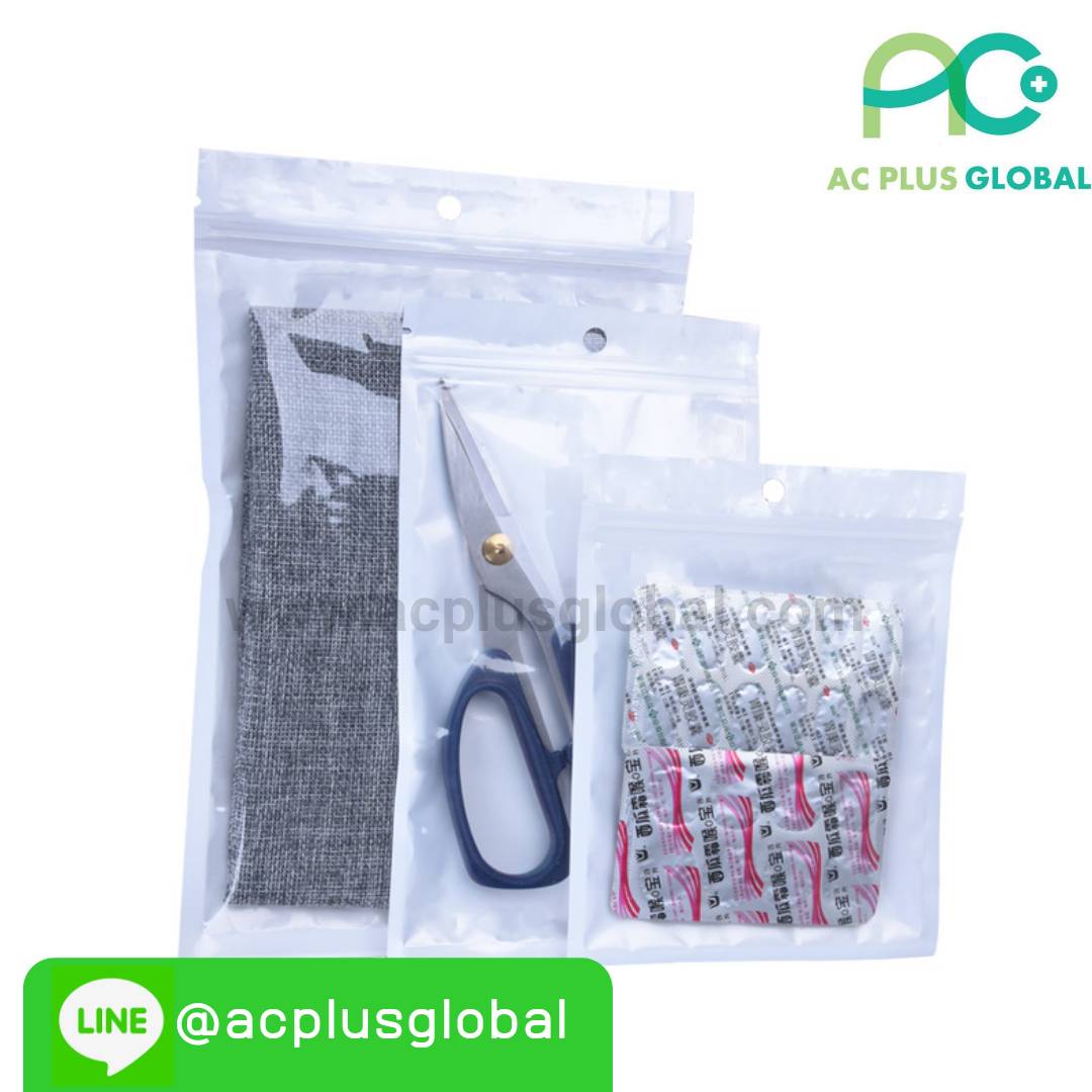 ▪ ถุงซิปล็อค ด้านหน้าใส ด้านหลังสีขาว ตั้งไม่ได้ มีรูแขวน ป้องกันอากาศและความชื้นได้ดีเยี่ยม