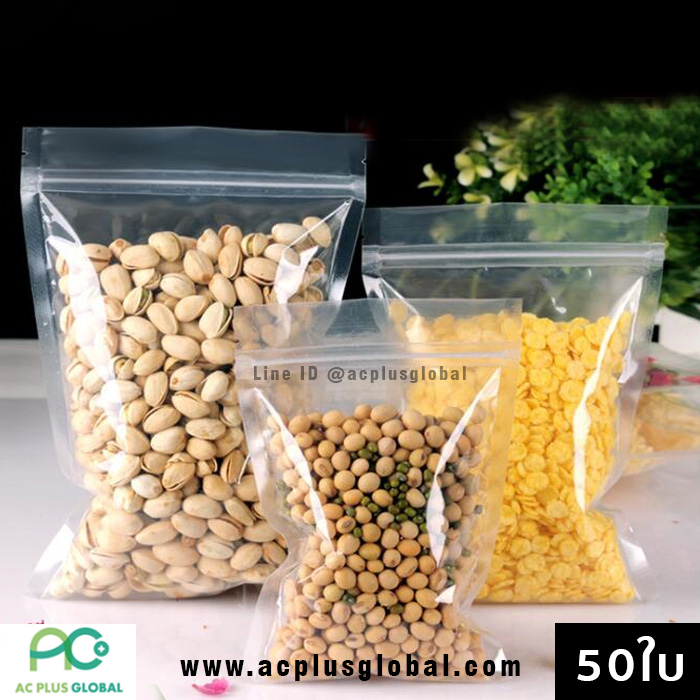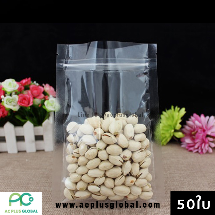 วัสดุถุงซิปล็อค : ถุงซิปล็อคโพลีใสล้วน ตั้งไม่ได้